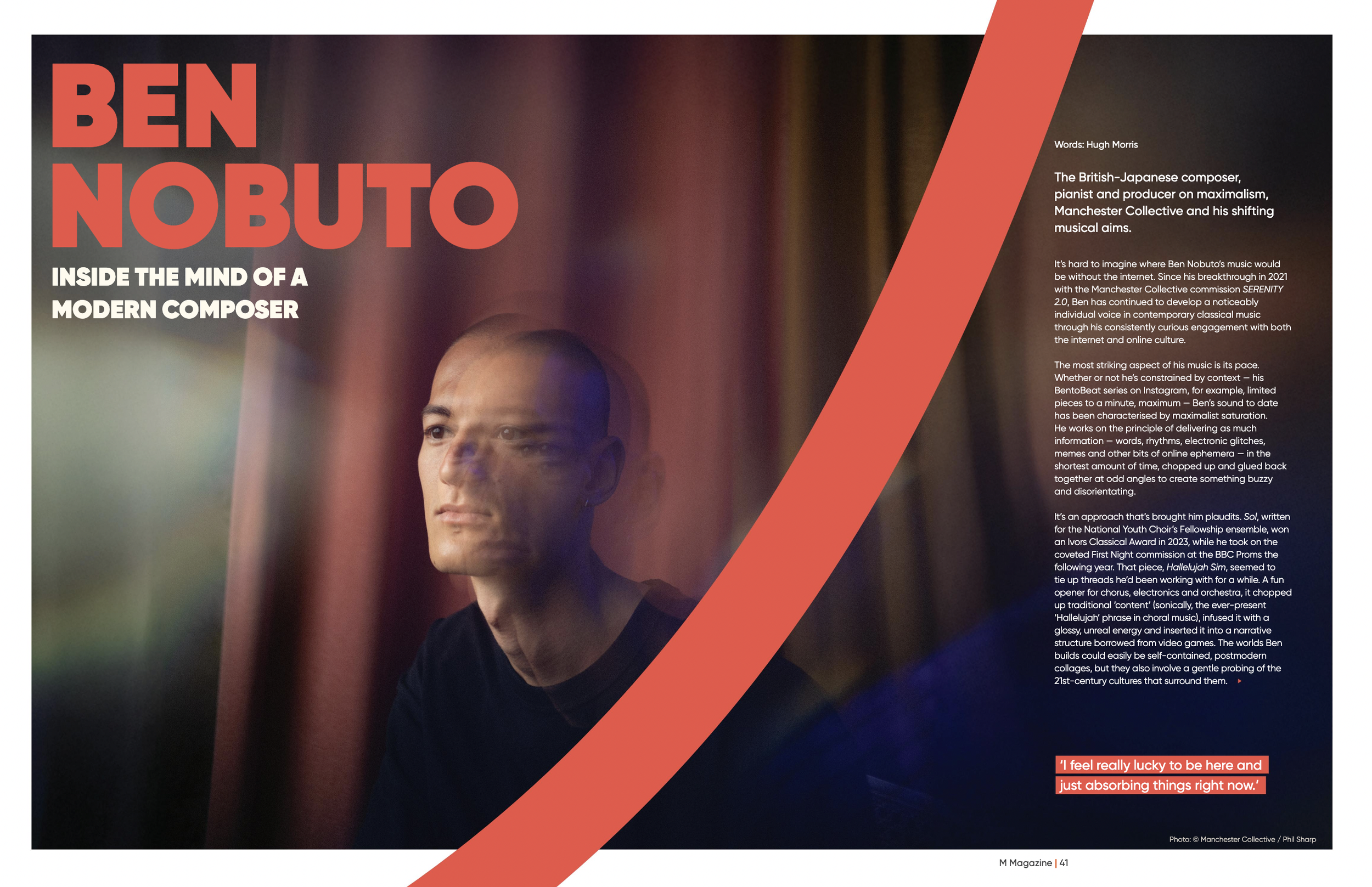 As he looks to the future, Ben feels his musical aims are shifting. What once felt sincere — ‘something really intense, everything all at once, in-your-face’ — has faded. ‘I’m more interested in finding these more subtle, ambiguous blurrings of feelings, emotions or concepts that feel more focused on one thing or a few particular things, and bringing out the rich ambiguity in those,’ he tells M.